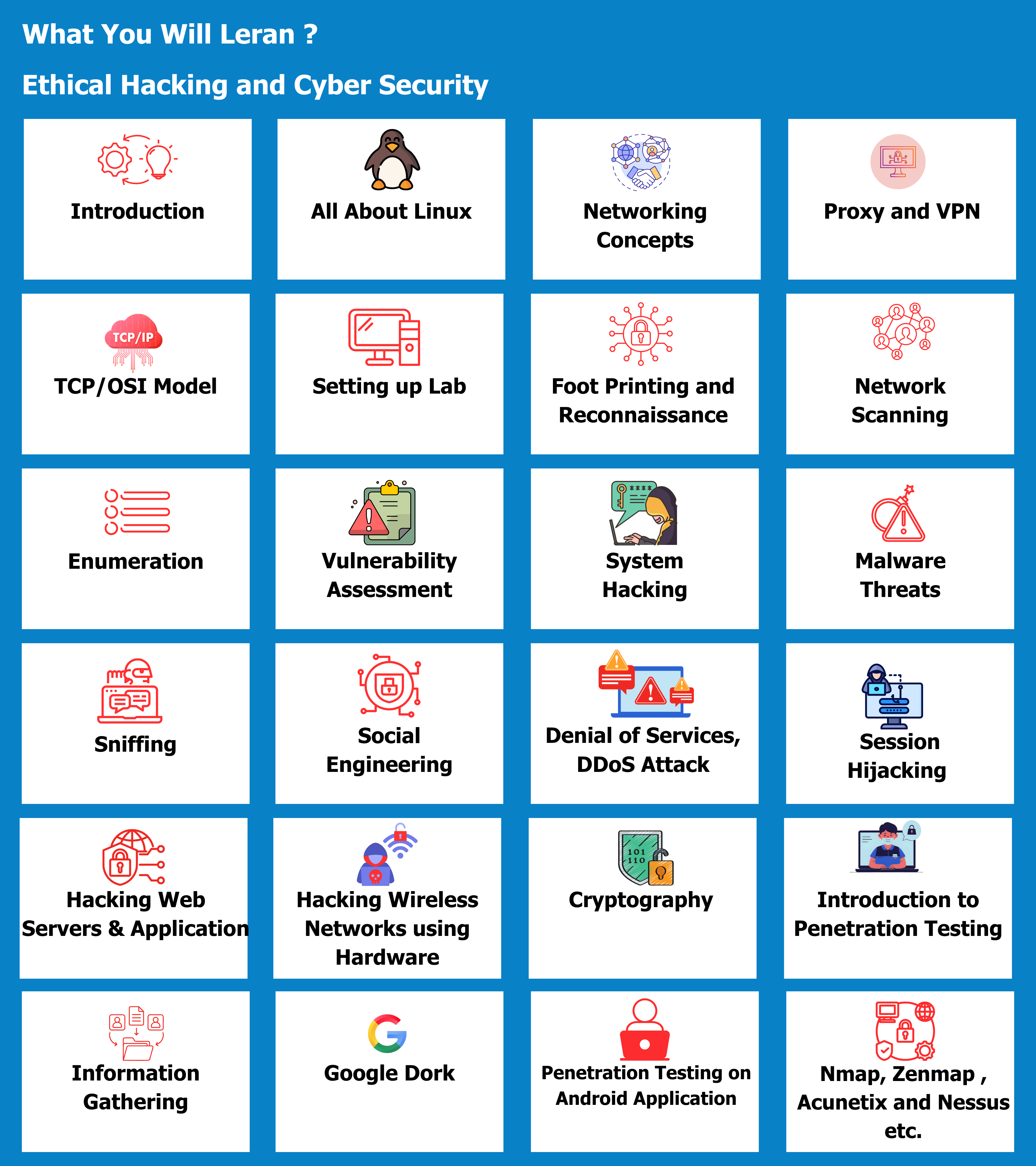 Master the art of Cyber Security with hands-on training in Cyber Security, Linux, Ethical Hacking, Digital Forensics, and Cyber Crime Investigation.