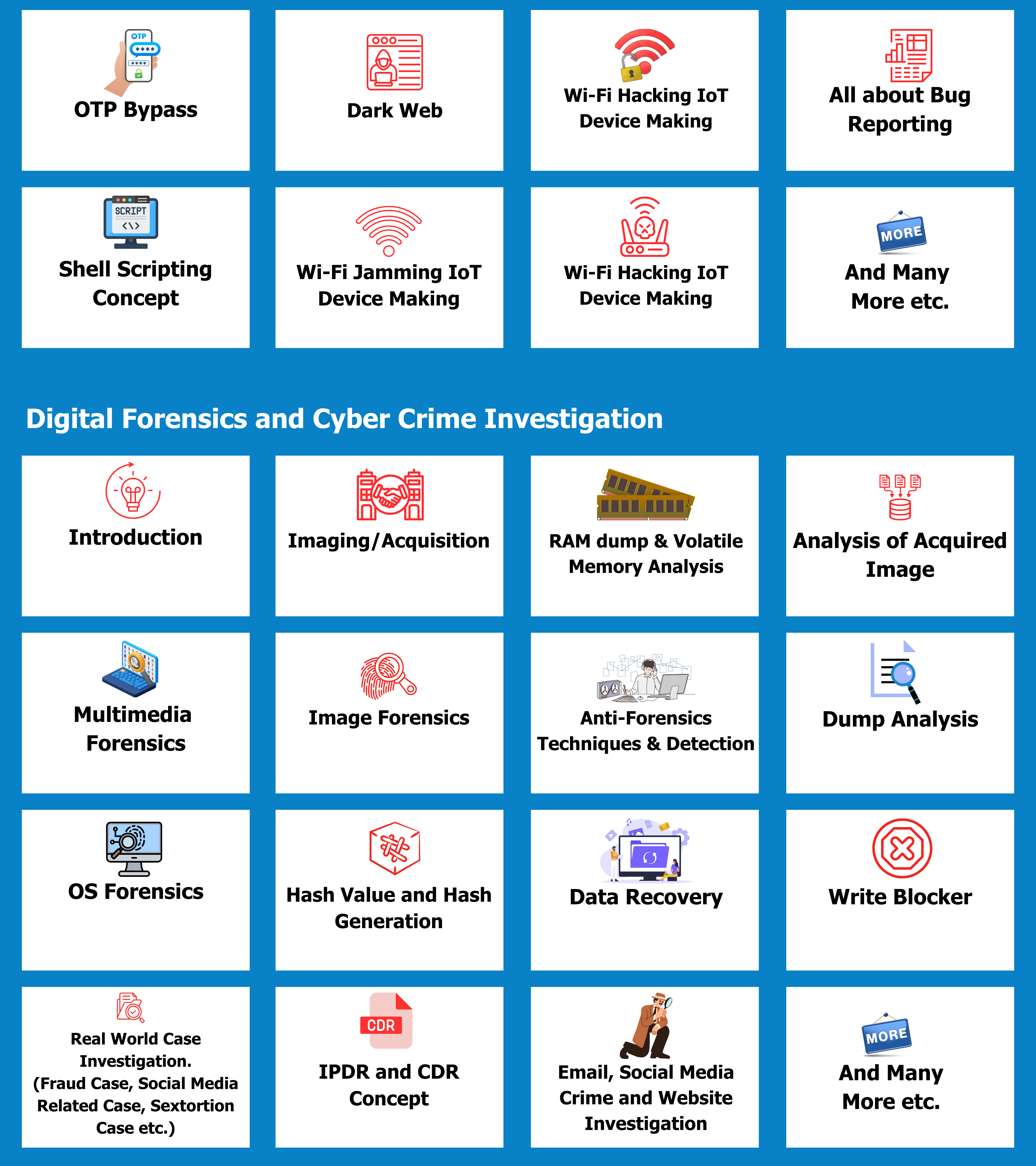 ✅ Cyber Crime Investigation: Explore real case investigation techniques including fraud analysis, social media crimes, sextortion, IPDR & CDR concepts, email and website investigations, and more.